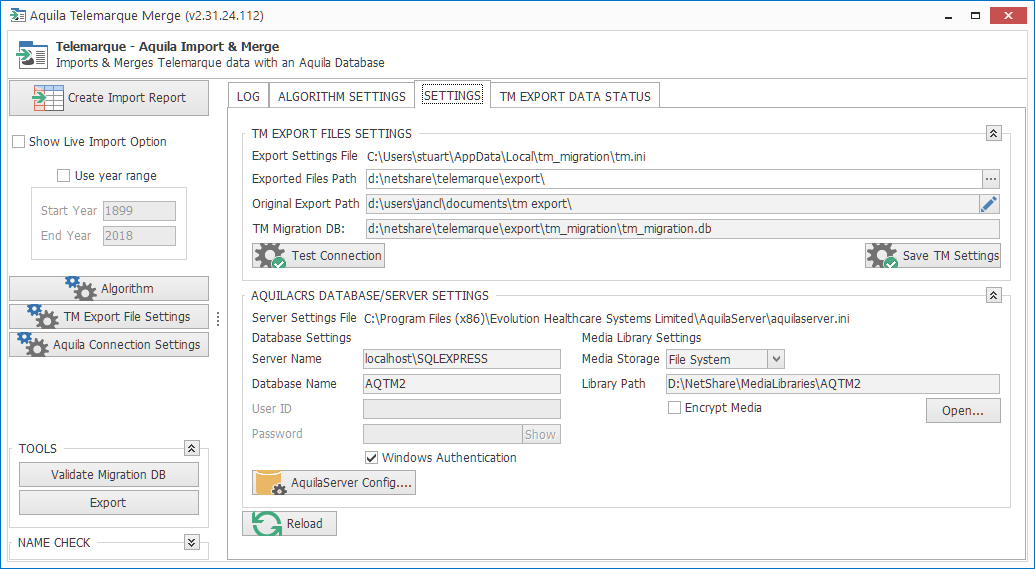 This value is read only, as it refers to the tm_migration folder beneath the Exported Files Path |
